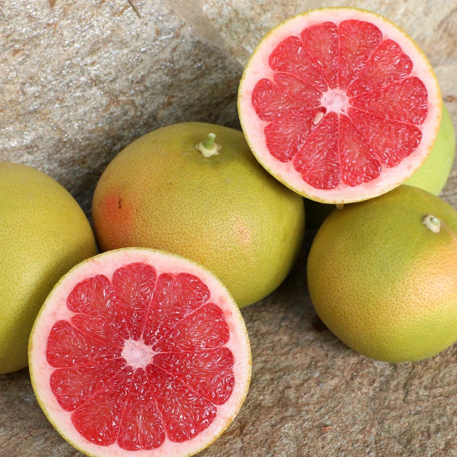 Die Farbe des Fruchtfleisches dieser Grapefruit variiert von rosa bis rot.