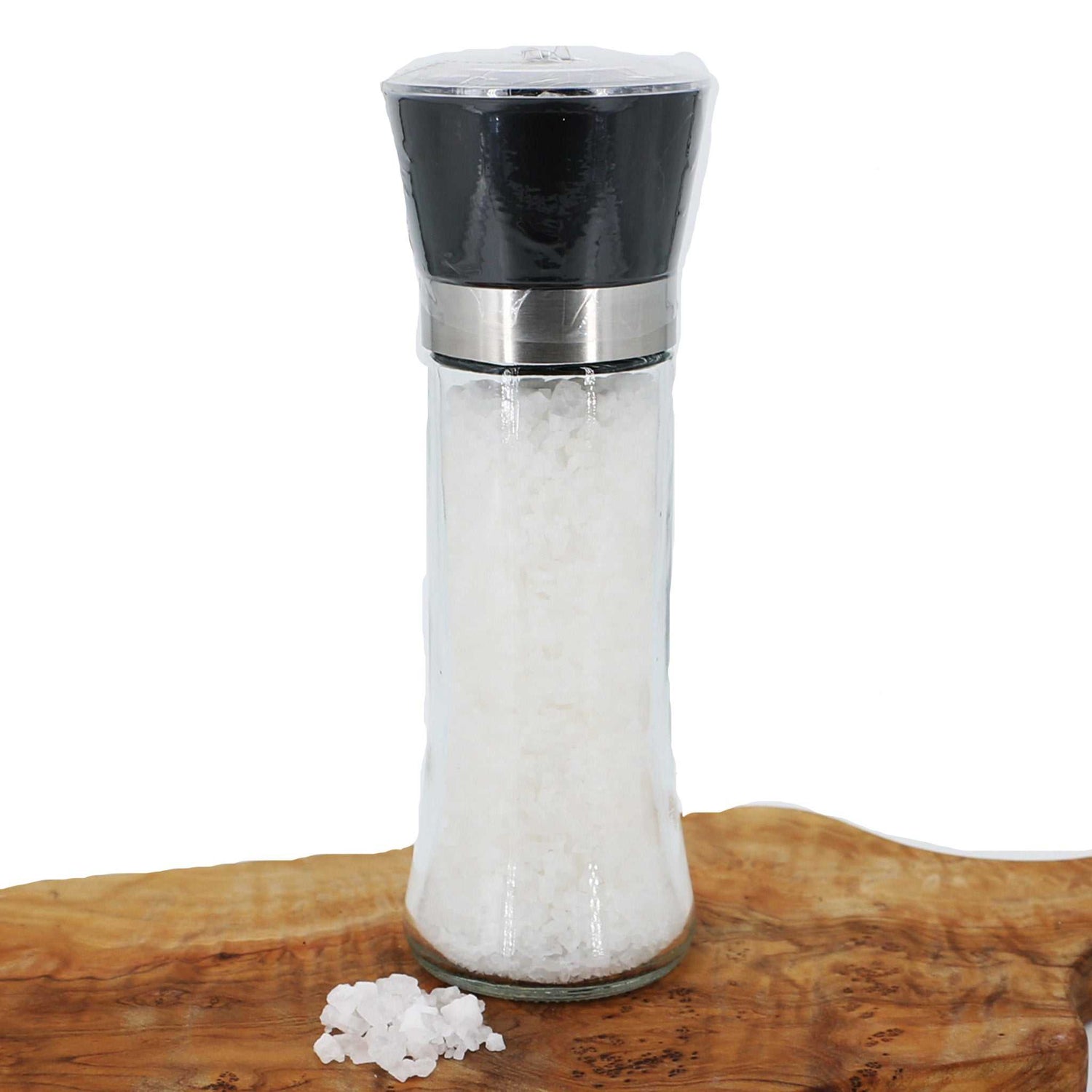 Der transparente Glaskörper sorgt für eine moderne, zeitlose Optik und ermöglicht jederzeit einen Blick auf den Füllstand. Der robuste Plastikdeckel schützt das Salz vor Feuchtigkeit, während die zuverlässige Mühleinheit für ein gleichmäßiges Mahlergebnis sorgt.
